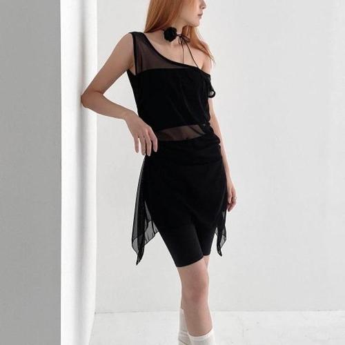 [VY] 여자 롱 스포티 비침 매쉬 튜닉 코디 언발 나시