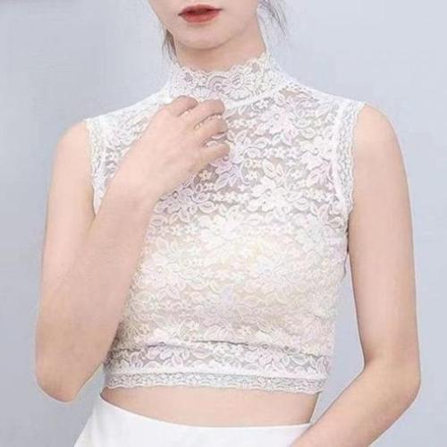 [옷자락] 여자 여름 이너 메쉬 레이스 터틀넥 크롭 탑 티셔츠