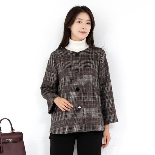 엄마옷 울 라운드 체크 망토자켓 JK516122 중년여성의류/60대/70대/마담/빅사이즈/할머니옷