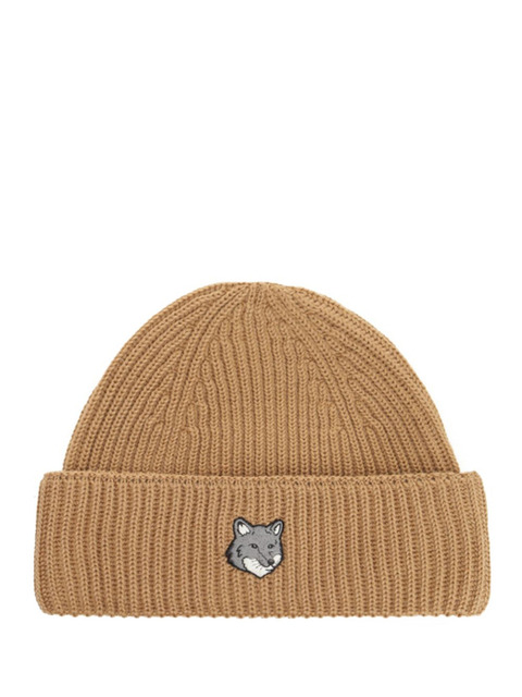 메종 키츠네 베이지 볼드 폭스헤드 가죽 패치 비니 OW06110KT1140