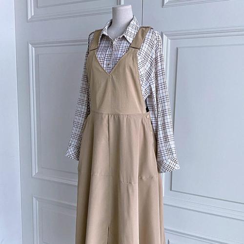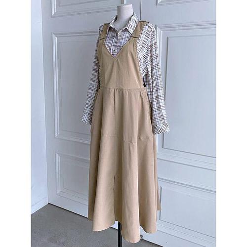 [샵앤]여성 멜빵 플레어 A라인 데일리 면 롱 원피스 DGB-WDR-4752-베이지