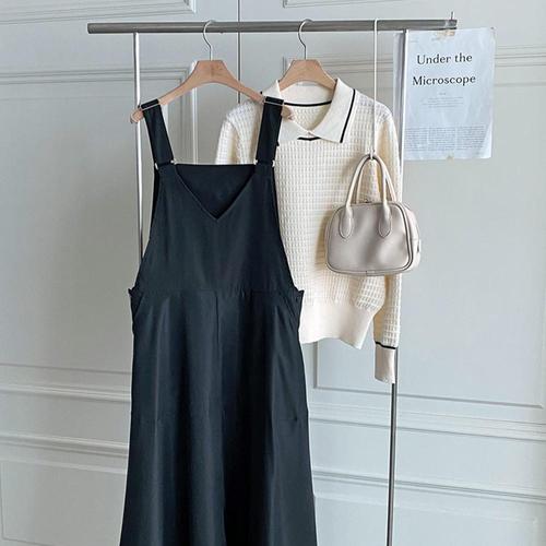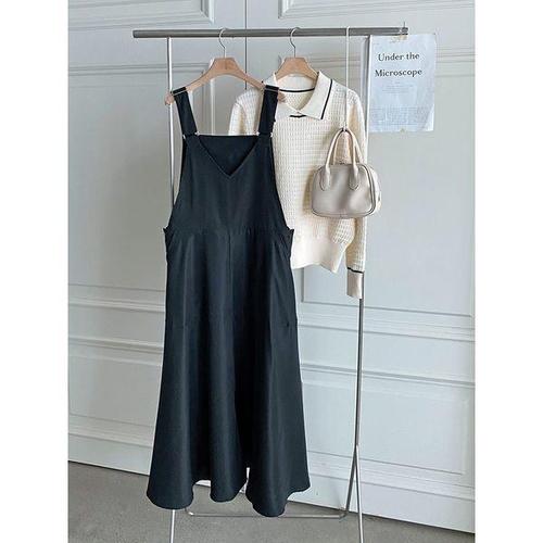 [신상오픈런]멜빵치마 브이넥 a라인 겨울임부복 플레어 니트원피스