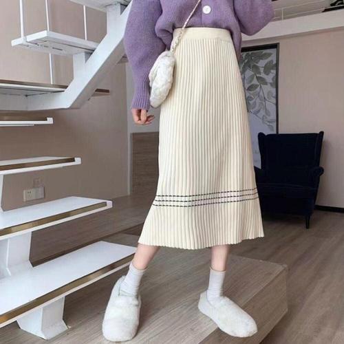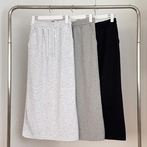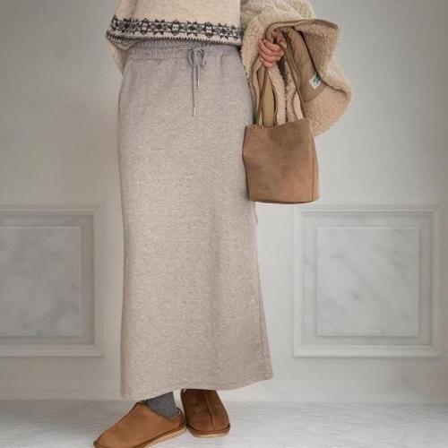 [다잇템][다잇템] 여성 무채색 고무줄 슬릿 일자 일상용 면원단 롱스커트_24253721_588872