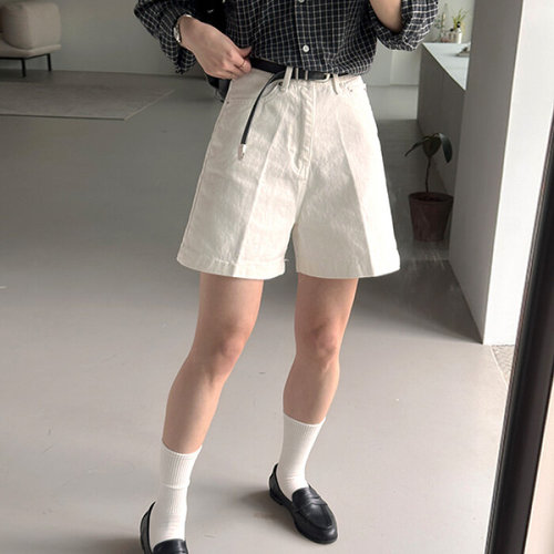 더클립 / 밀키 하이웨스트 A라인 코튼 반바지 면반바지