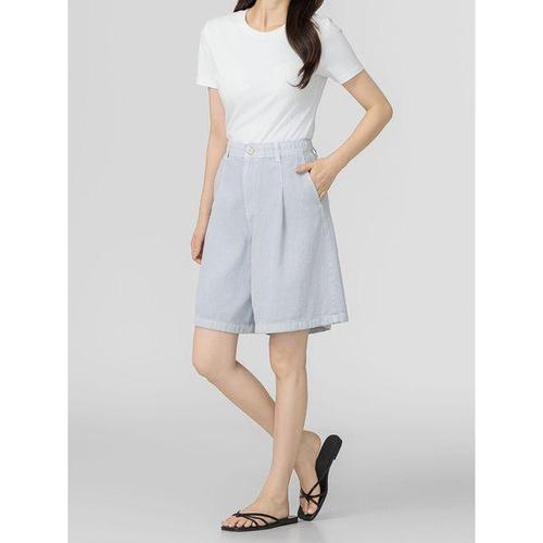 |KMP8CEB|여성용 스판 밴딩 청반바지 핀턱 면혼합 캐주얼 반바지