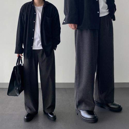 [모노폴로지]면접 출근룩 겨울 투턱 기모슬랙스 딥 벌룬 바지 와이드 정장 뒷밴딩 팬츠 2color