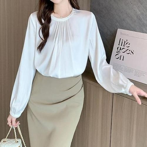 [엄지척]여성 하객룩 면접룩 새틴 긴팔 브이넥 블라우스_19649772_667501