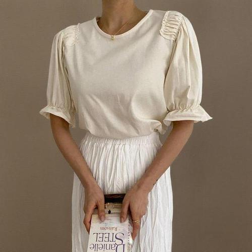 [신상오픈런]여성용 무지 코튼 프릴 소매밴딩 블라우스