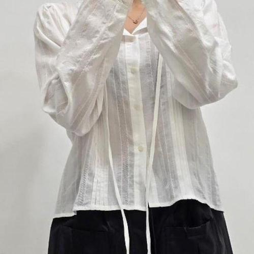 [다잇템][다잇템] 여자 롱슬리브 면원단 스트랩 프릴 미니멀리즘 핀턱 블라우스_22530132_588872