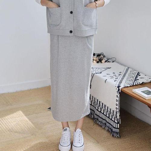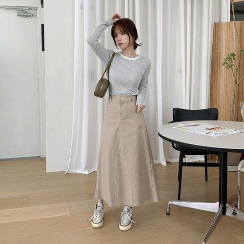 [다잇템_패션]여자 슬릿 코튼 등원룩 에이라인 롱스커트