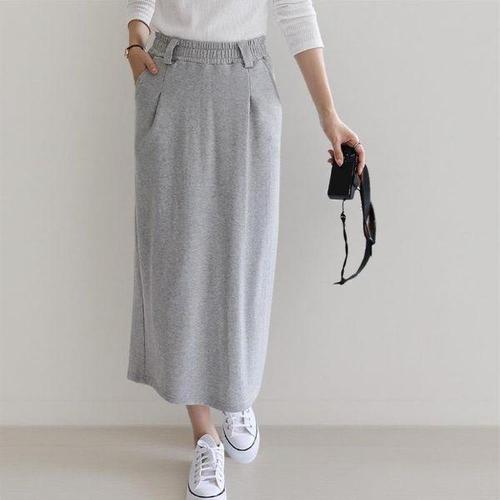 여성 롱스커트 H라인 미디 밴딩 스커트 코튼 치마