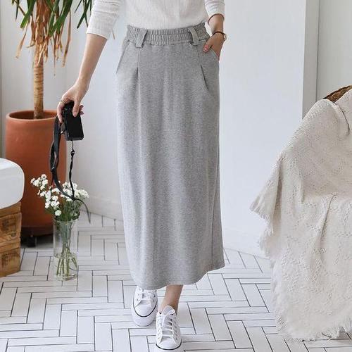 [신상오픈런]여성 링밴딩 A라인 뒷트임 면 롱스커트