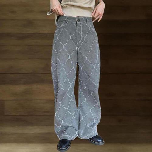 [신상오픈런]여성 와이드핏 체크 패턴 100% 면 바지
