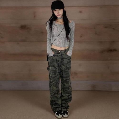 [신상오픈런]여성 카고 포켓 와이드 팬츠 면혼합 힙무드 바지