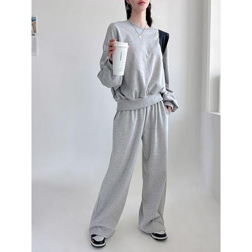 [국내 추천 1위] 다용도 맨투맨 와이드 팬츠 세트 패션 투피스 트레이닝 세트 봄 가을 나른하고 캐주얼한 맨투맨 상하세트