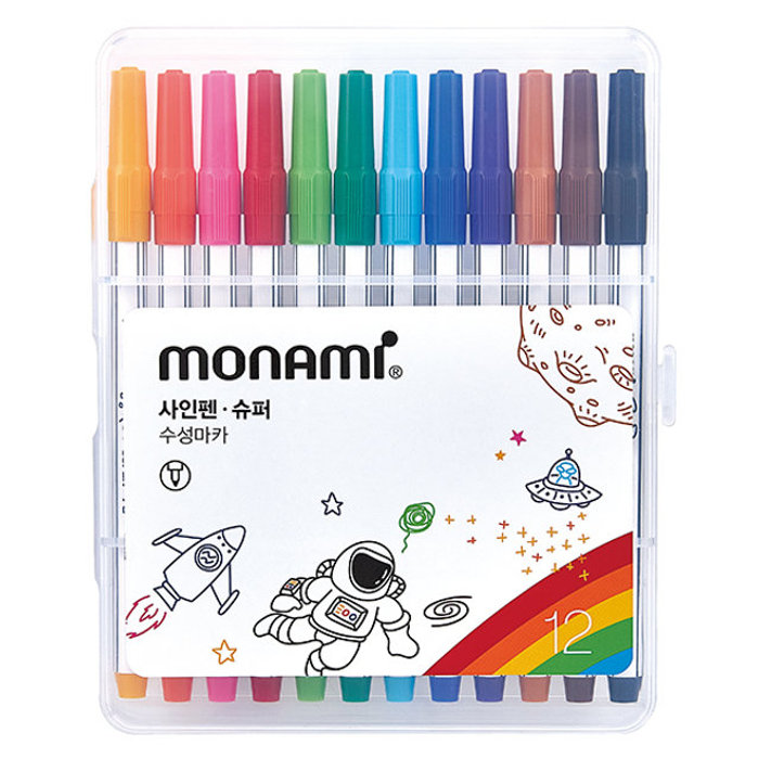 모나미 슈퍼 싸인펜 12색 세트 수성 사인펜 어린이 스케치용
