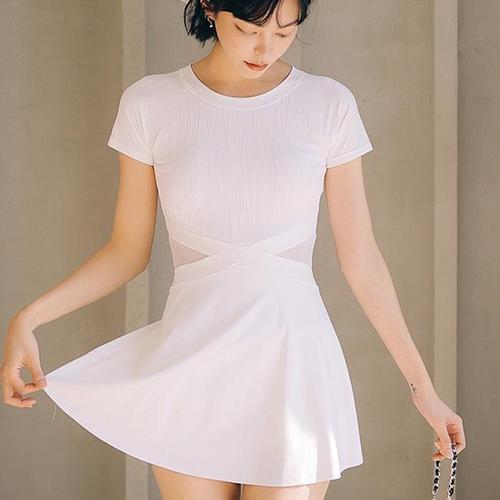 [다잇템]여자 플리츠 모노키니 비침 후레아 수영복 (10193786A)