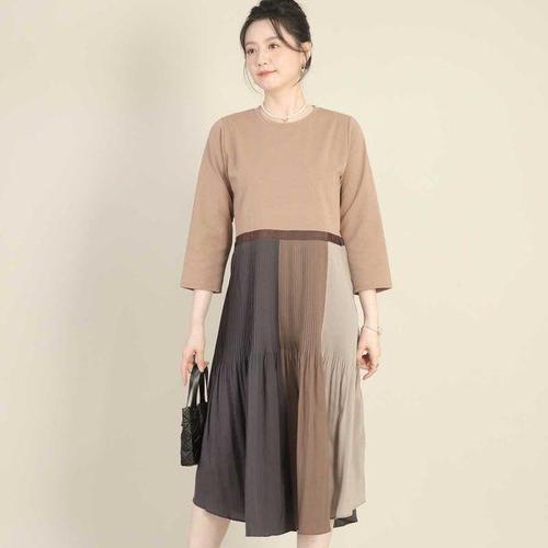 [애비뉴투지]엄마옷 모니카 삼색 플리츠 라운드 베이지 여성 봄 가을 칠부 캐쥬얼 롱 원피스 O10003