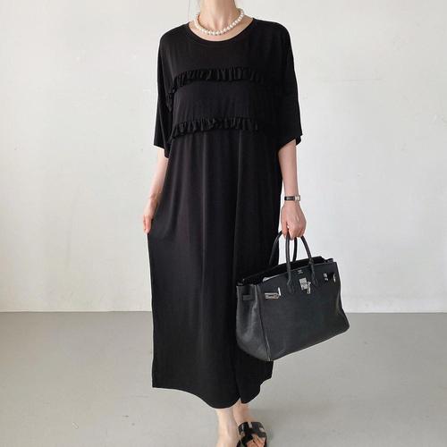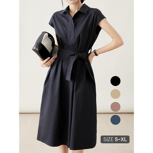[디어로우]모니카 단정한 반팔 롱 원피스