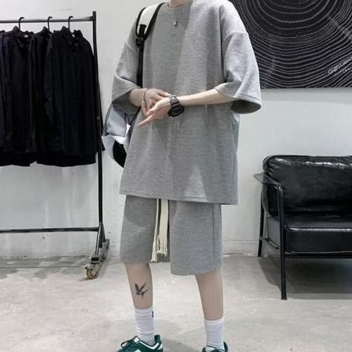 [에이치플러스몰]모던 데일리 오버핏 허리끈 포인트 남자 반팔 세트