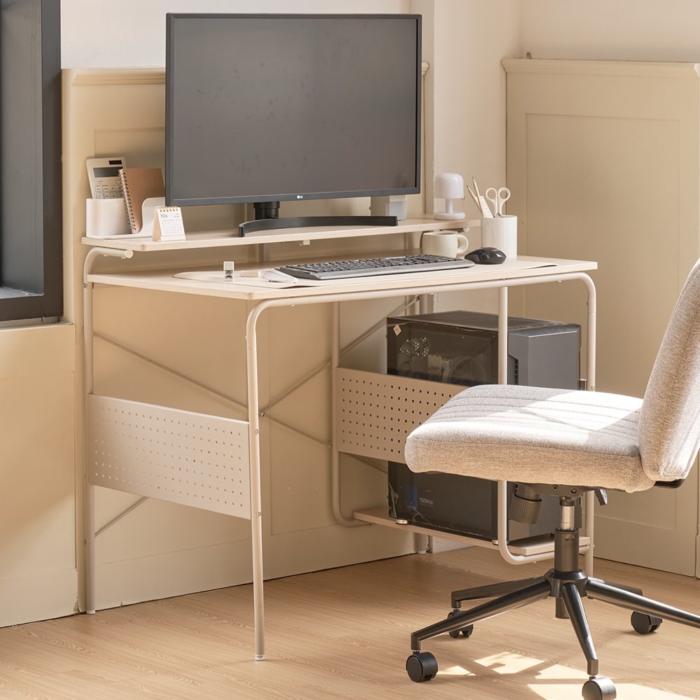 [모던하우스] ON 밀리언 화이트 스틸 콘센트 데스크 책상 테이블 1000X600 (웜화이트)