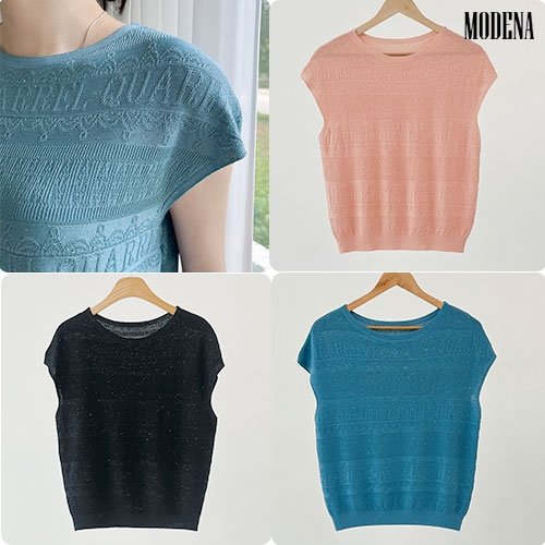 [H2.모데나] ★기획초특가★ 쟈가드 엠보 스팽글 레터링 포인트 니트_5컬러