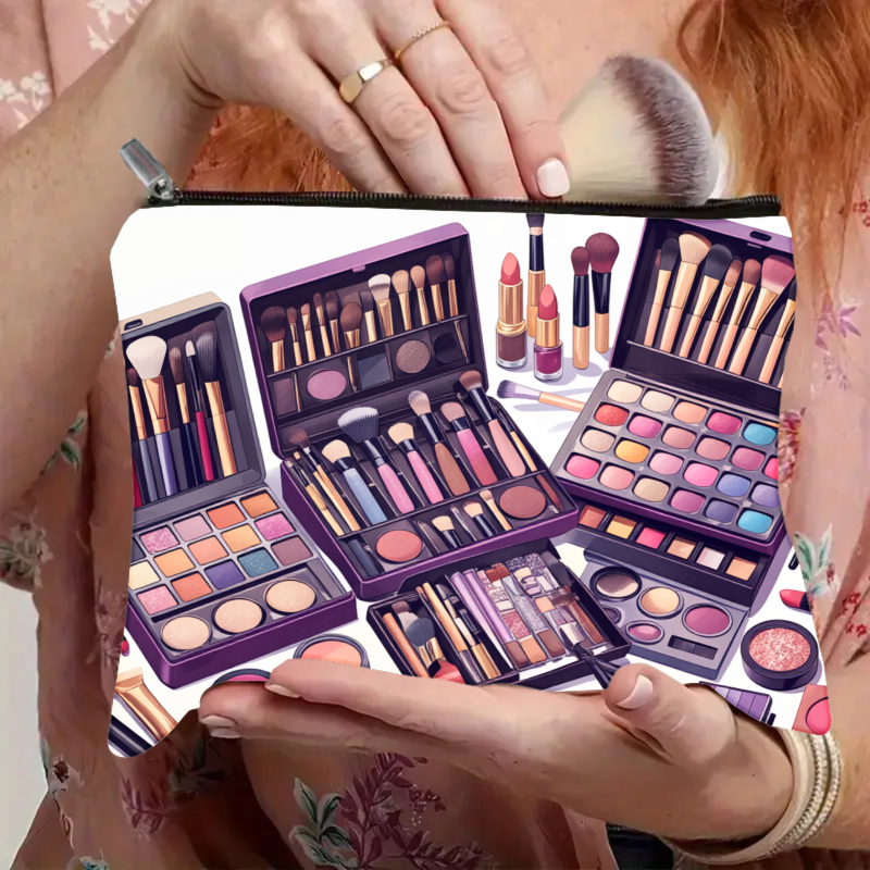 TEMU 1개 메이크업 파우치, 메이크업 팔레트, 브러쉬, 립스틱, 아이섀도우, 파운데이션, 블러셔, 루스 파우더 패턴. 가볍고 접이식, 지퍼형 메이크업 파우치, 세탁 가능, 휴대용 보관 | 우아한 액세서리 | 지퍼 잠금, 소형 메이크업 파우치