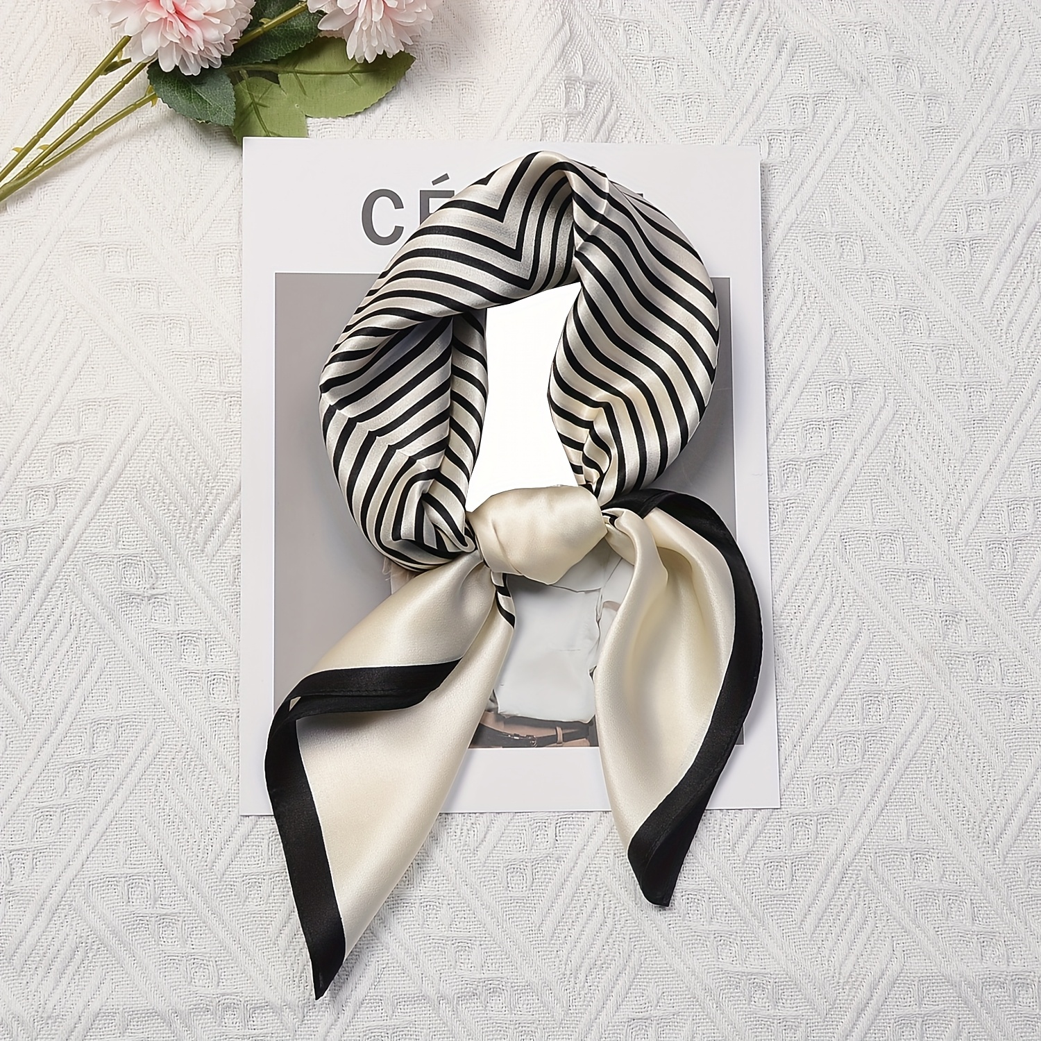 TEMU 여성용 100% 멀베리 실크 스카프 - 우아한 & 블랙 스퀘어 목 보호용 스카프, 통기성 있는 따뜻함, 캐주얼 및 포멀 액세서리, 헤어 스카프, 세련된 프린트, 부드러운 질감