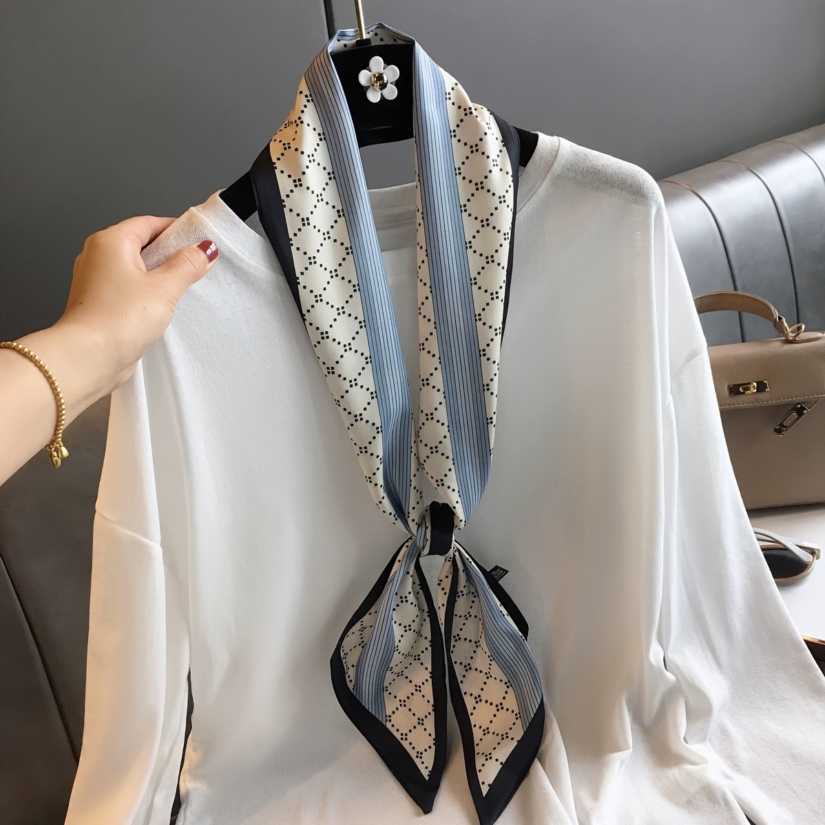 TEMU 우아한 파란색 대각선 프린트 스카프 - 다용도 넥타이, 헤드밴드, 벨트 - 부드러운 소재, 통기성 및 장식성 - 모든 계절에 적합한 스타일리시한 나이트 아웃 액세서리, 우아한 넥타이 | 부드러운 텍스처, 스카프