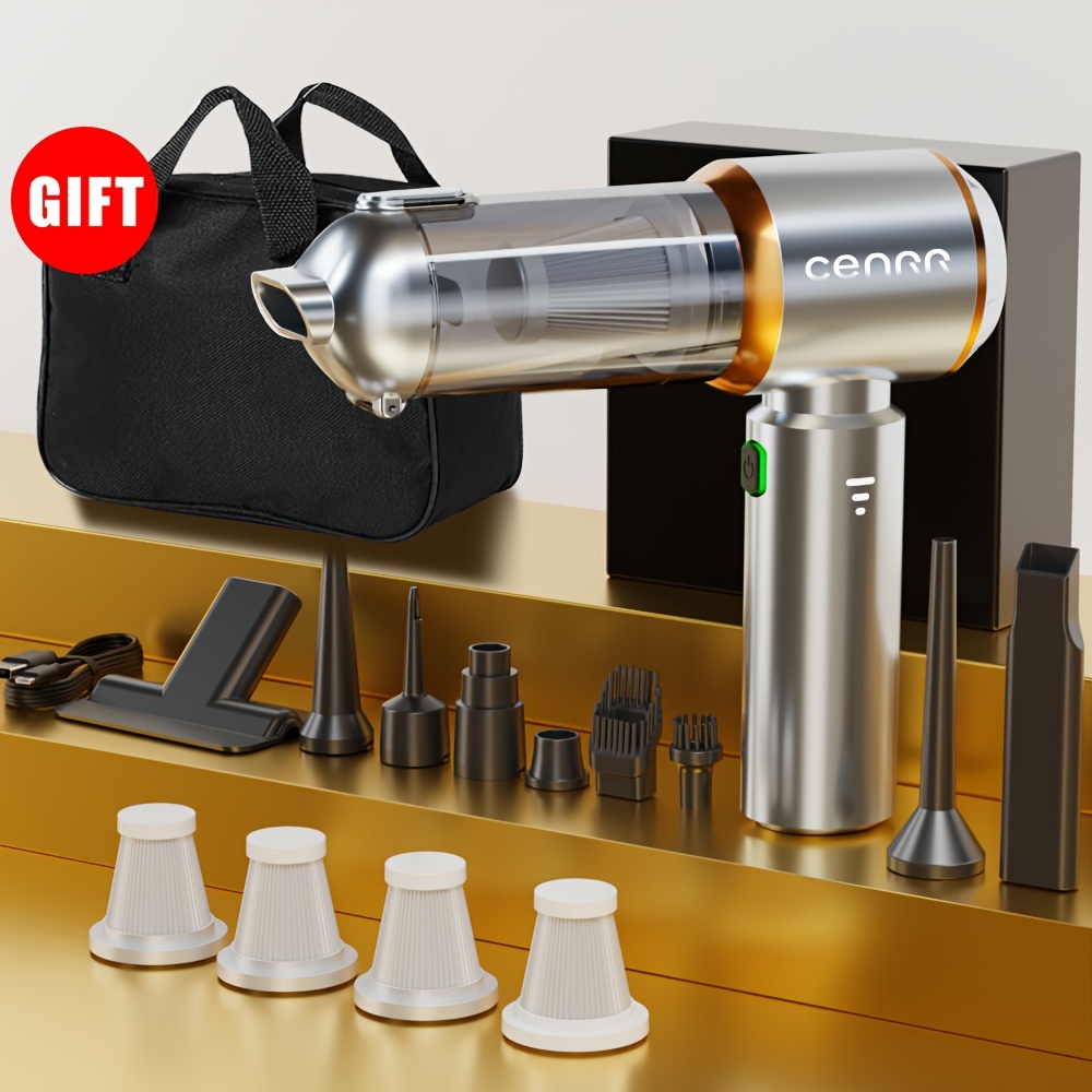 TEMU CENRR 16000PA 고 흡입력 휴대용 자동차 진공 청소기, 100W 브러시리스 모터, 배터리 디스플레이, 휴대용 무선 진공 청소기, 4-in-1 가정 및 자동차 사용, 강력한 0-200W, 조용한 80dB, USB 충전, 36V 최대 전압, 먼지 컵 0.2L, 플라스틱 바디