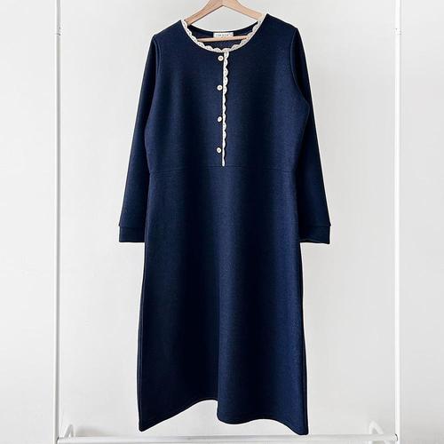 [다잇템] 여자 진주단추 배색카라 겨울하객룩 큰사이즈 롱원피스_23705836_588872