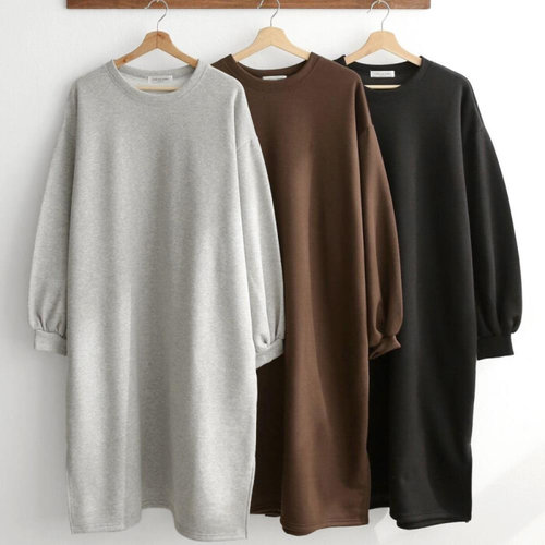 옷자락 / 여성 겨울 기모 롱 박시핏 원피스 옆슬릿 볼륨핏
