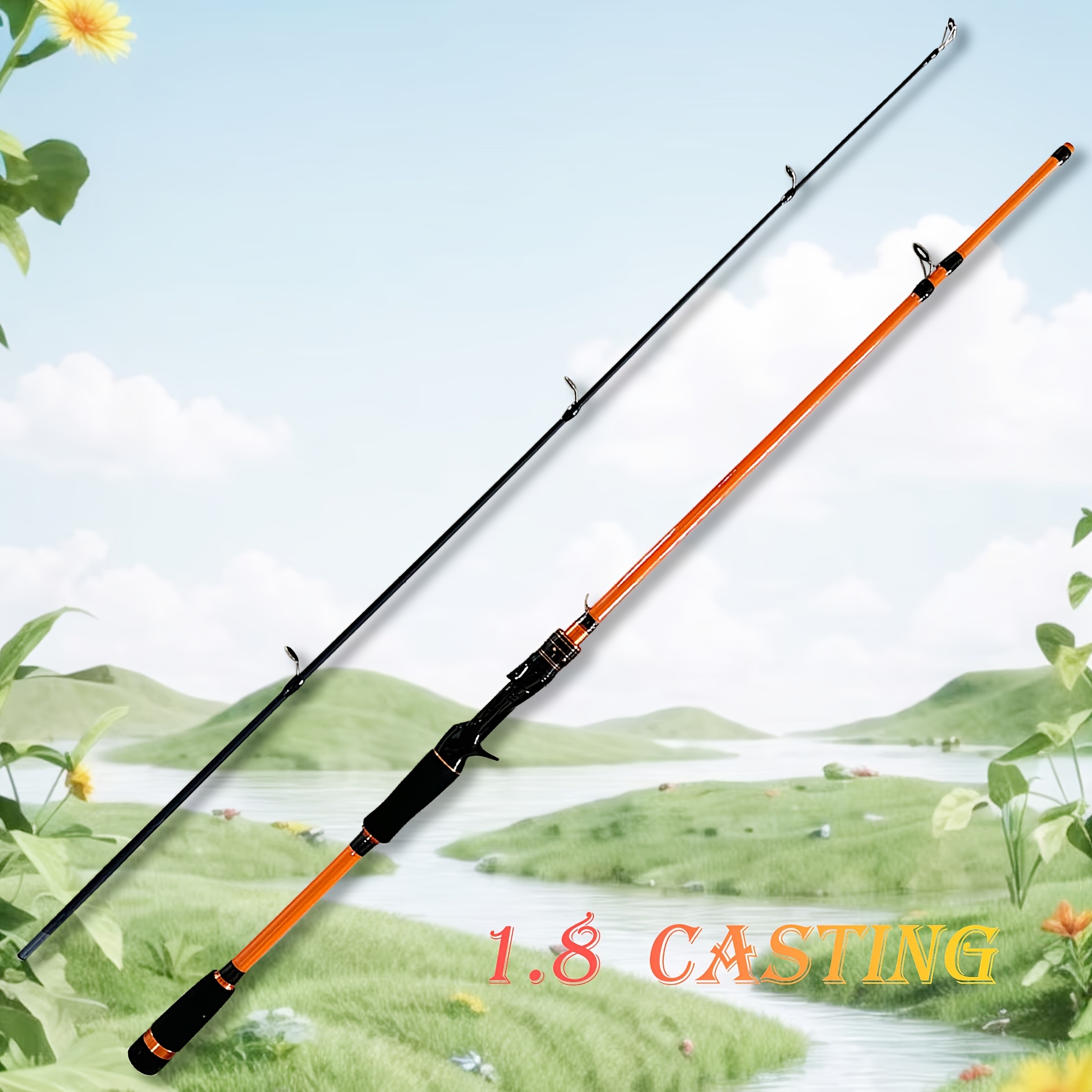 TEMU 오렌지색 블랙 디자인 카본 파이버 루어 로드 낚싯대 1.68m 2.1m 세그먼트 핸들 세라믹 가이드 링 디자인 아름답고 독특한 외관 블랙 피아노 래커 회전 금속 알루미늄 장식 M 톤