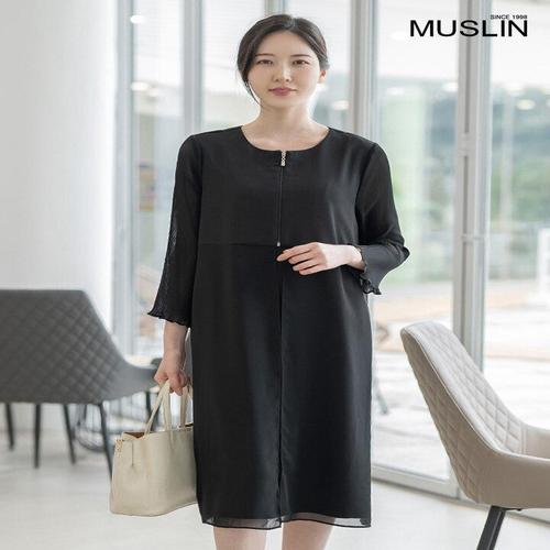 [모슬린]엄마옷 라운드 플리츠 무지 원피스 602FGH091 마담/중년여성/빅사이즈/50대/60대