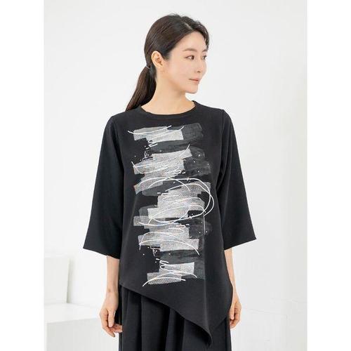 [모슬린]엄마옷 라운드 7부 언발 루즈 블라우스 MQG125820 마담 미시 중년여성 빅사이즈 할머니옷 50대 6..