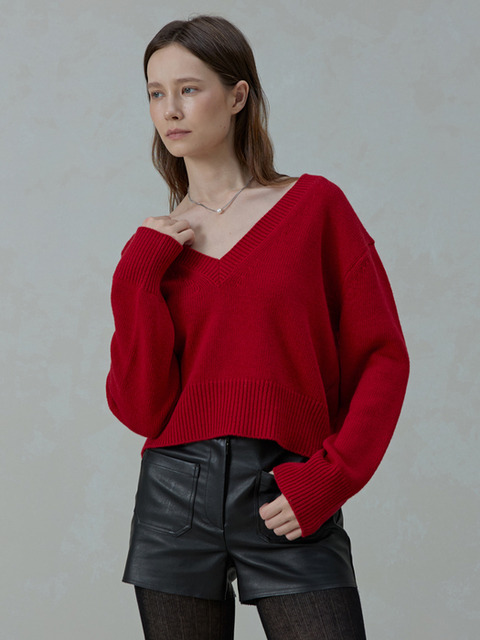 [아흐레] 모아나 리뉴울 크롭 브이넥 니트 _레드