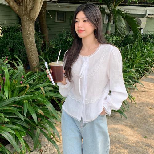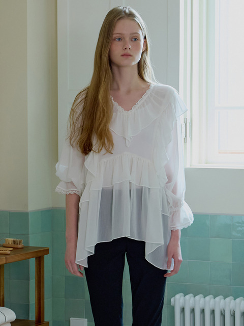 [모어오브]슈크림 블라우스 레이스 프릴 긴팔 탑