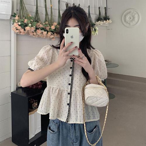 [모어오브]미네뜨 도트 블라우스 프릴 반팔 탑
