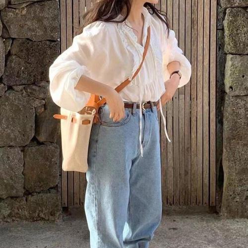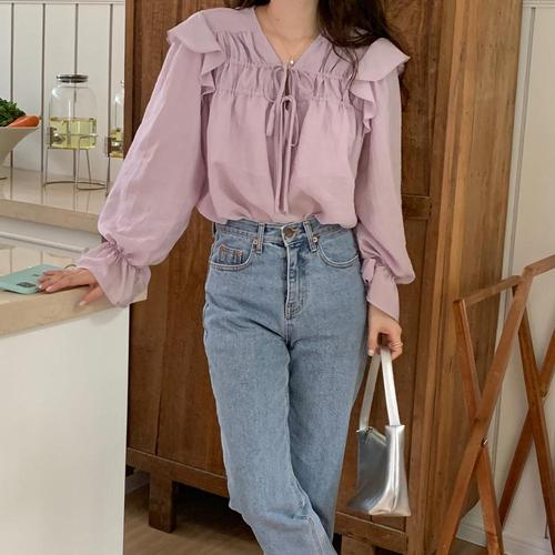[모어오브]뮤이 블라우스 프릴 카라 긴팔 탑