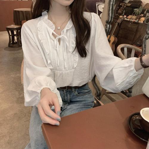 [모어오브]로르 블라우스 프릴 리본 긴팔 탑