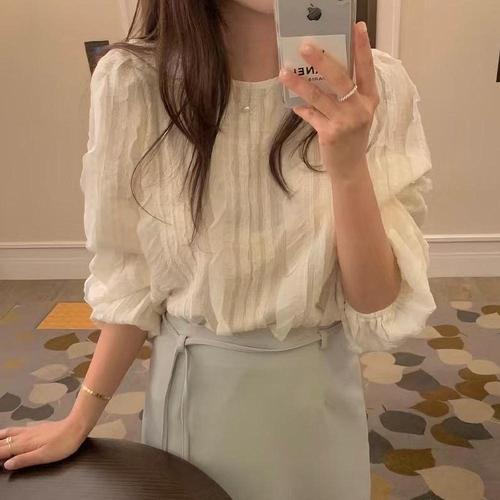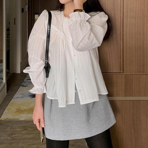 [모어오브]샬롯 블라우스 링클 프릴 긴팔 탑