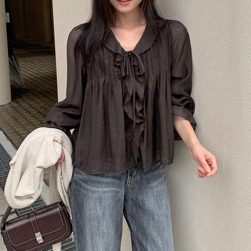 [모어오브]드레시 블라우스 프릴 리본 긴팔 탑