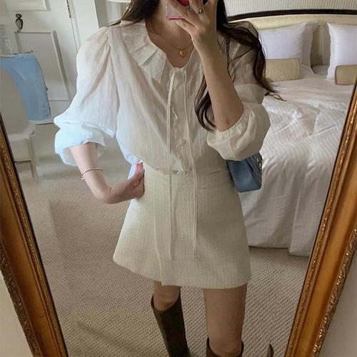 [모어렌] [MADE] 유네스 프릴 라운드 블라우스 [tbs0508]