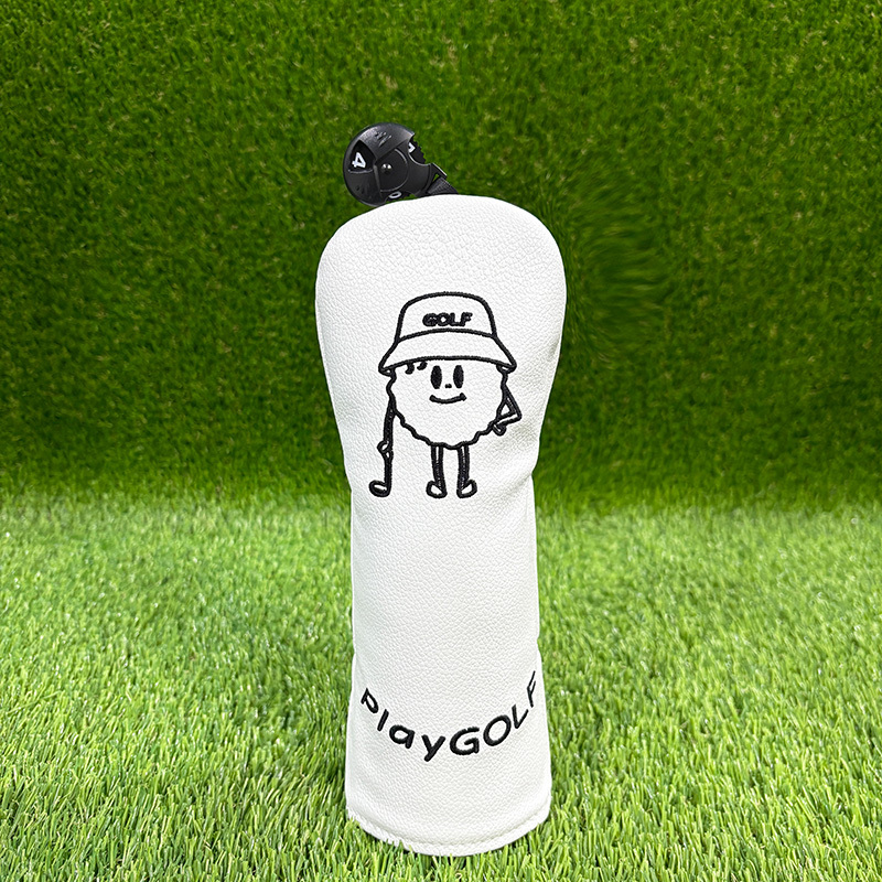 TEMU 귀여운 만화 캐릭터 프린트가 있는 골프 클럽 보호 커버 - 스크래치 방지 내구성 합성 소재, 다양한 모델 호환, 화이트/블랙, 클럽용 재미있는 골프 액세서리, 골프 클럽 액세서리, 재미있는 디자인, 스크래치 방지 커버