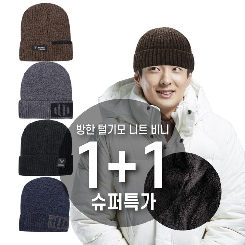 [1+1] 에이치투 남녀공용 방한 털기모 니트 비니 한파용 모자 융털 겨울모자 2장