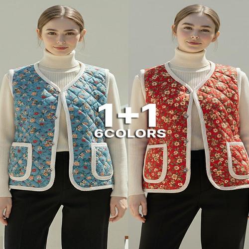 [에이샵][에이샵] 1+1 플라워 패턴 양털 안감 퀼팅 누빔 조끼_ASPE004F25