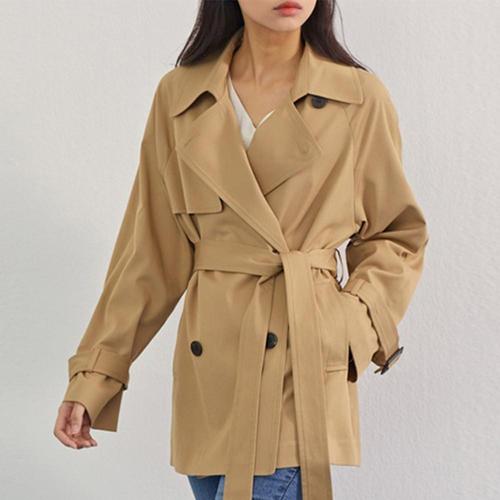 여성 패션 더블 브레스티드 숏 트렌치 코트 턴다운 칼라 긴 소매 코트 빈티지 여성 아우터웨어 시크 탑스