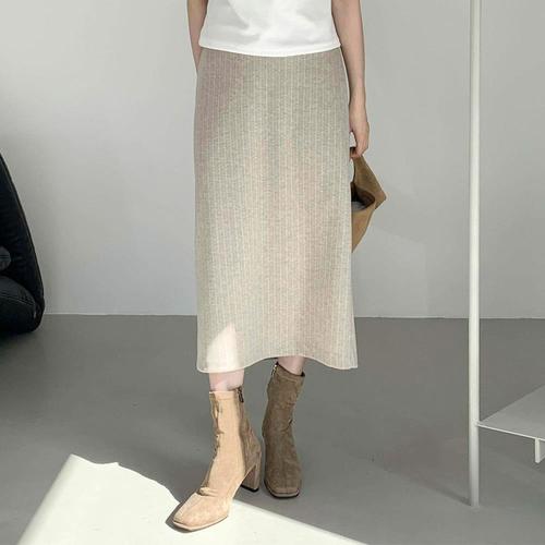 [옷자락] 여자 모직 탄탄 줄지 h라인 트임 롱 스커트
