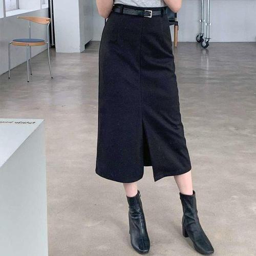 [옷자락]여자 레이온 스판 벨티드 트임 h라인 모직 롱 스커트
