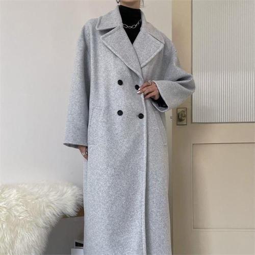 HA.M 여성 도톰한 코트 루즈핏 더블버튼 모직 롱 코트
